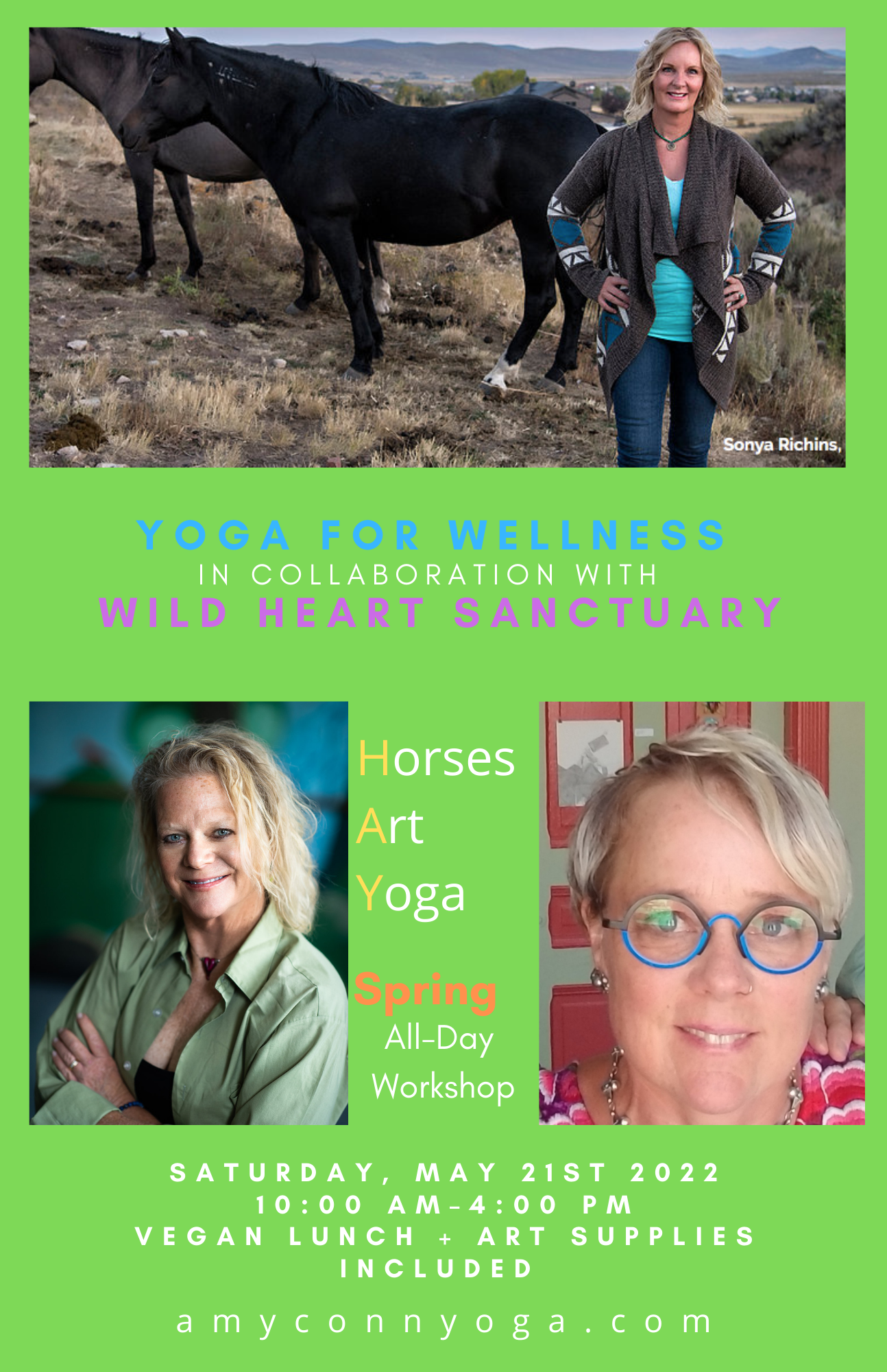Yoga for Wellness in collaboration with Wild Heart Sanctuary and artist educator Laura Wilson have organized a Seasonal Series of Workshops beginning this Winter on MAY 21ST, 2022. Complete with a full day of activities this memorable event is appropriately titled, the “HAY Workshop” (get it? Horses-Art-Yoga, HAY really is for horses!.)